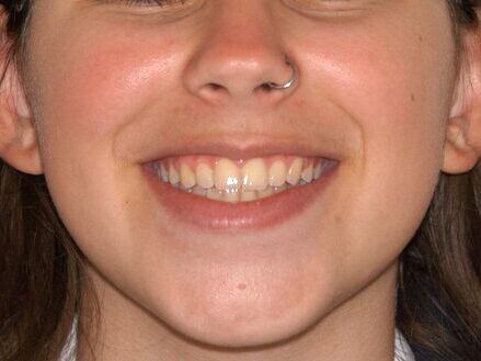 Our 8 year old patient would posture her tongue between her upper and lower teeth, stopping her front teeth from moving towards each other. She had a tongue crib glued onto her back teeth which stopped her tongue from posturing forward as well as training her tongue to rest behind her upper or lower front teeth. She then had braces as a teenager to perfect her bite and the alignment of her teeth.